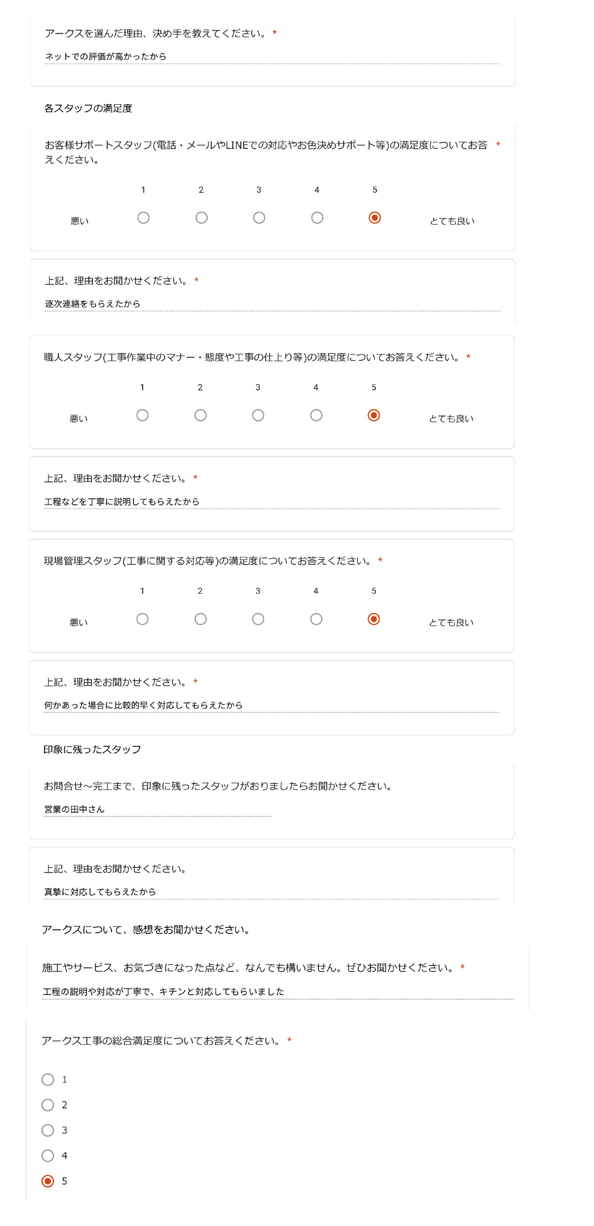 結果、綺麗な仕上がりに家族一同満足しています。職人の方々も親切で丁寧な対応たったで安心しました。口コミが高評価なのも納得です。本当にありがとうございました。