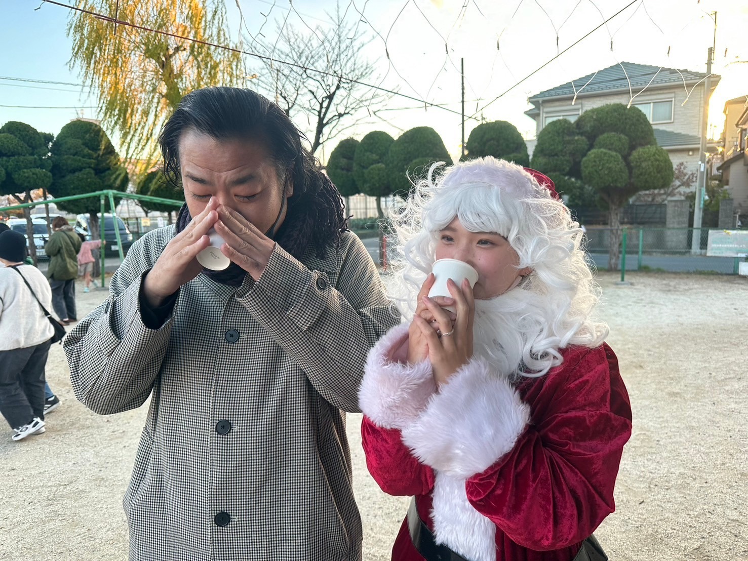 自治会の皆様にもサンタ帽をお渡ししたところ