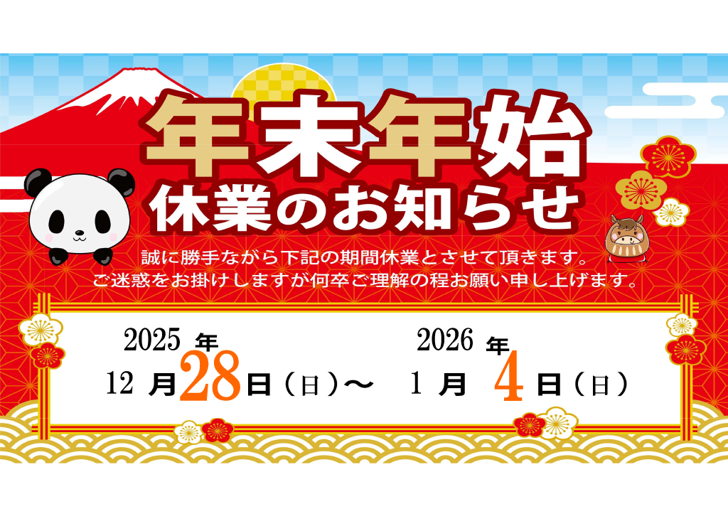 年末年始の営業日のお知らせʕ •ᴥ• ʔ