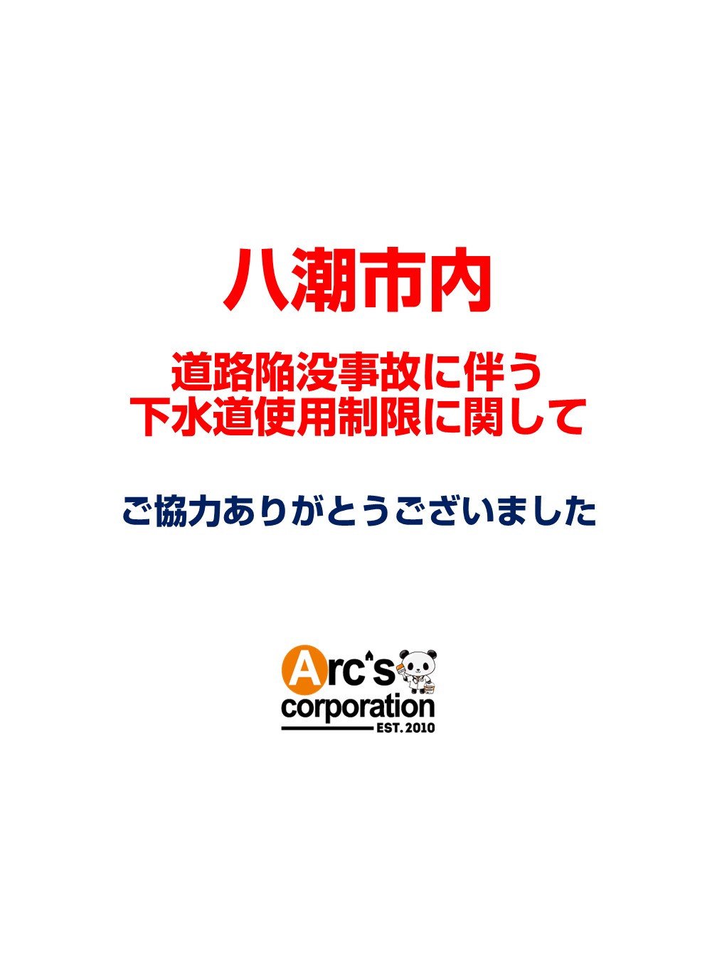 八潮市内道路陥没事故に伴う下水道使用制限に関して ~活動終了のお知らせ~