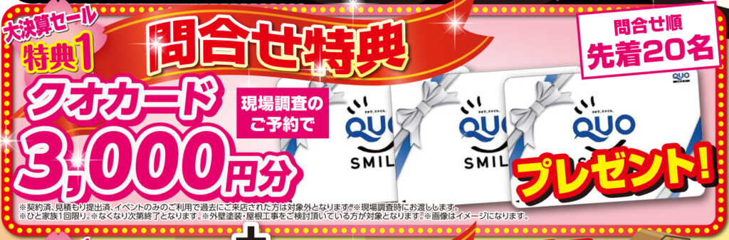 クオカード3,000円分プレゼント!!