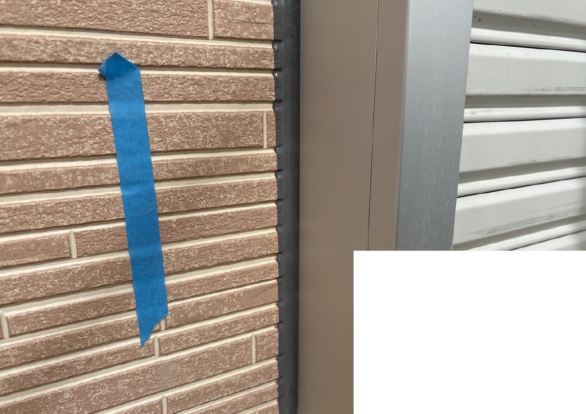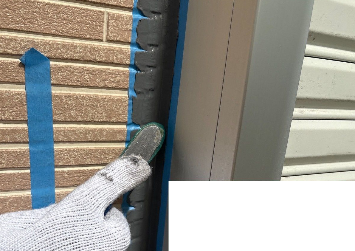 コーキング ※サッシ廻り部 施工中(ヘラ押さえ)