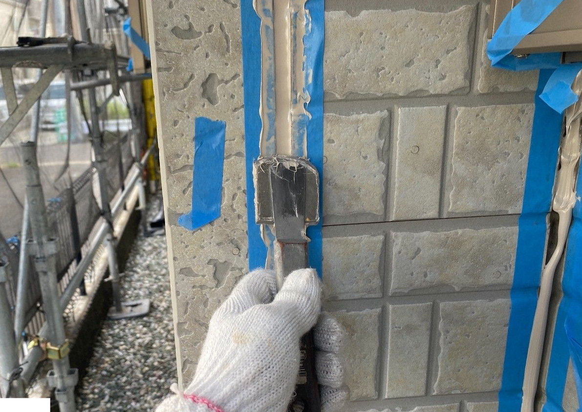 コーキング ※目地部分 施工中(ヘラ押さえ)