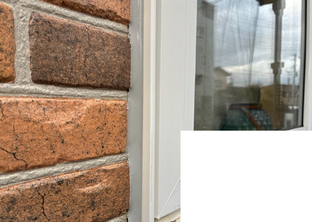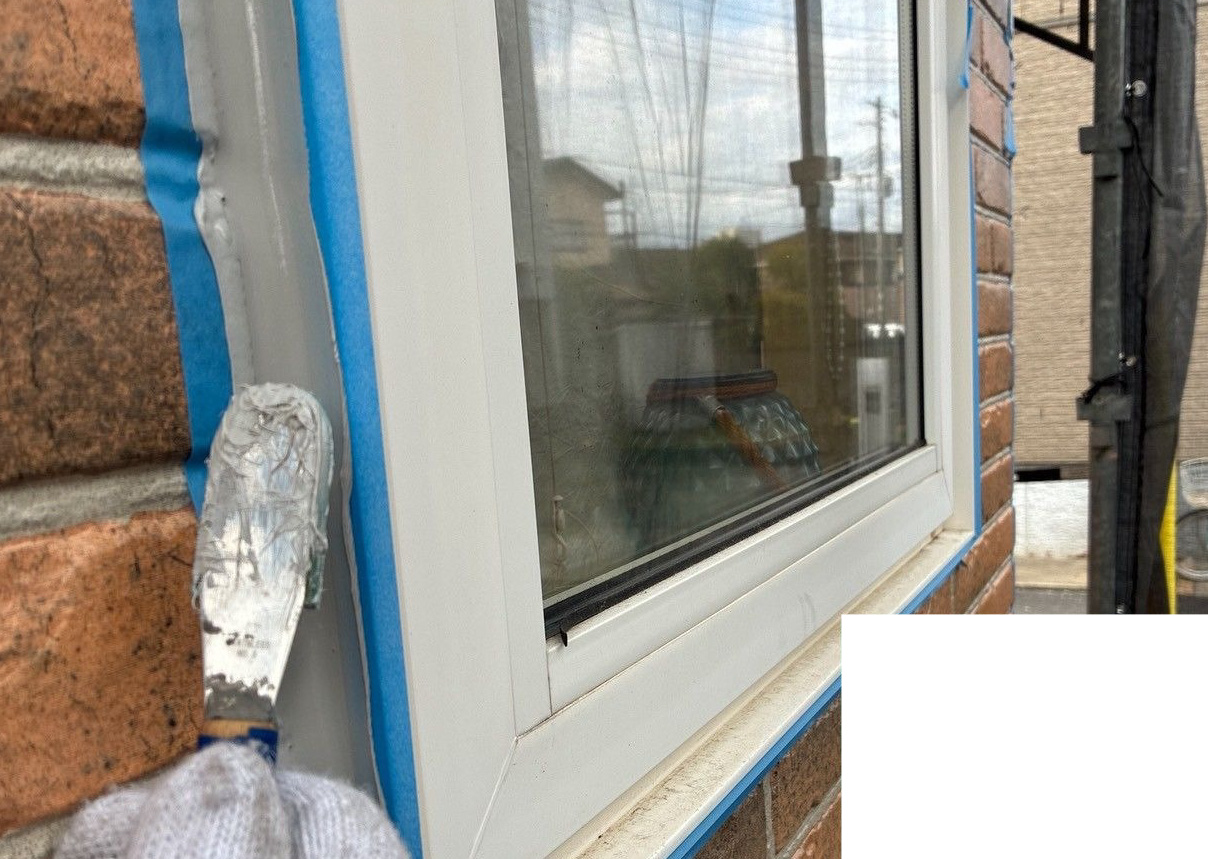 コーキング ※サッシ廻り部分 施工中(ヘラ押さえ)