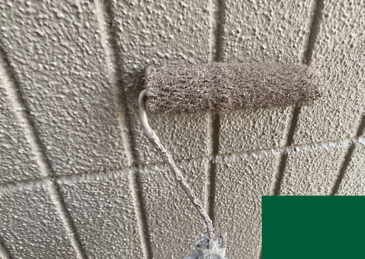 外壁 ※ベイジュ部分 施工中(上塗り)
