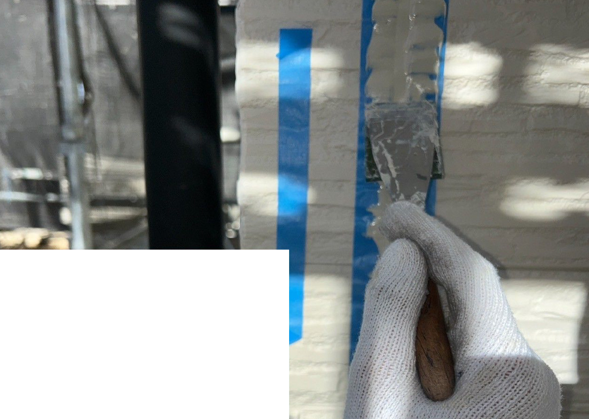 外壁 ※目地部分 施工中(ヘラ押さえ)