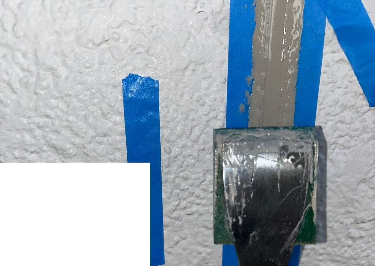 コーキング ※目地部分 施工中(ヘラ押さえ)