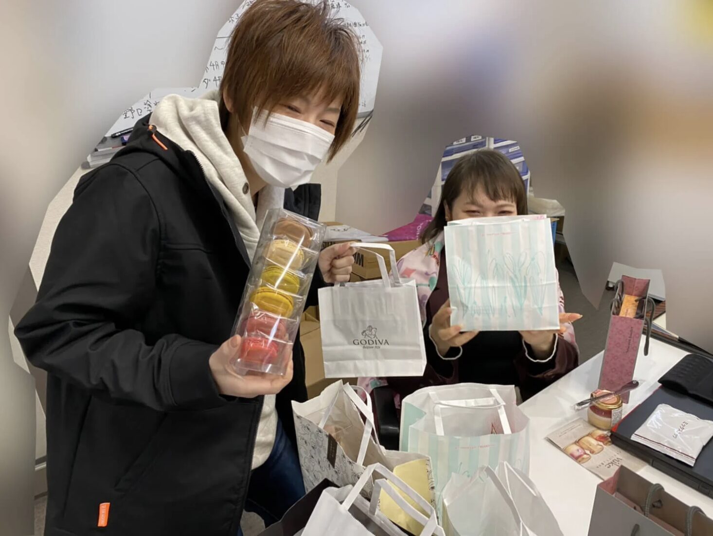 とっても楽しそうな写真ですが、ネタで社長がくれたお返しミックスナッツに誰もツッコまない女性陣