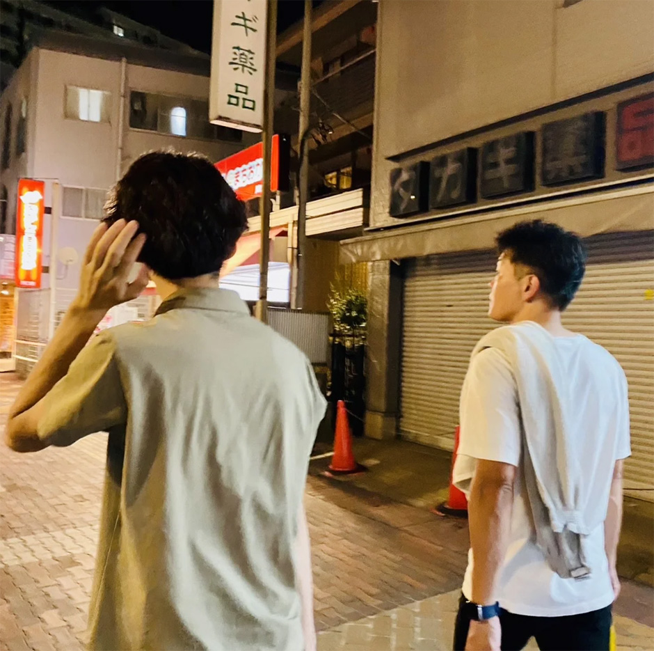 ↑いい汗かいて、リフレッシュ後の森田(左)に下田社長(右)
