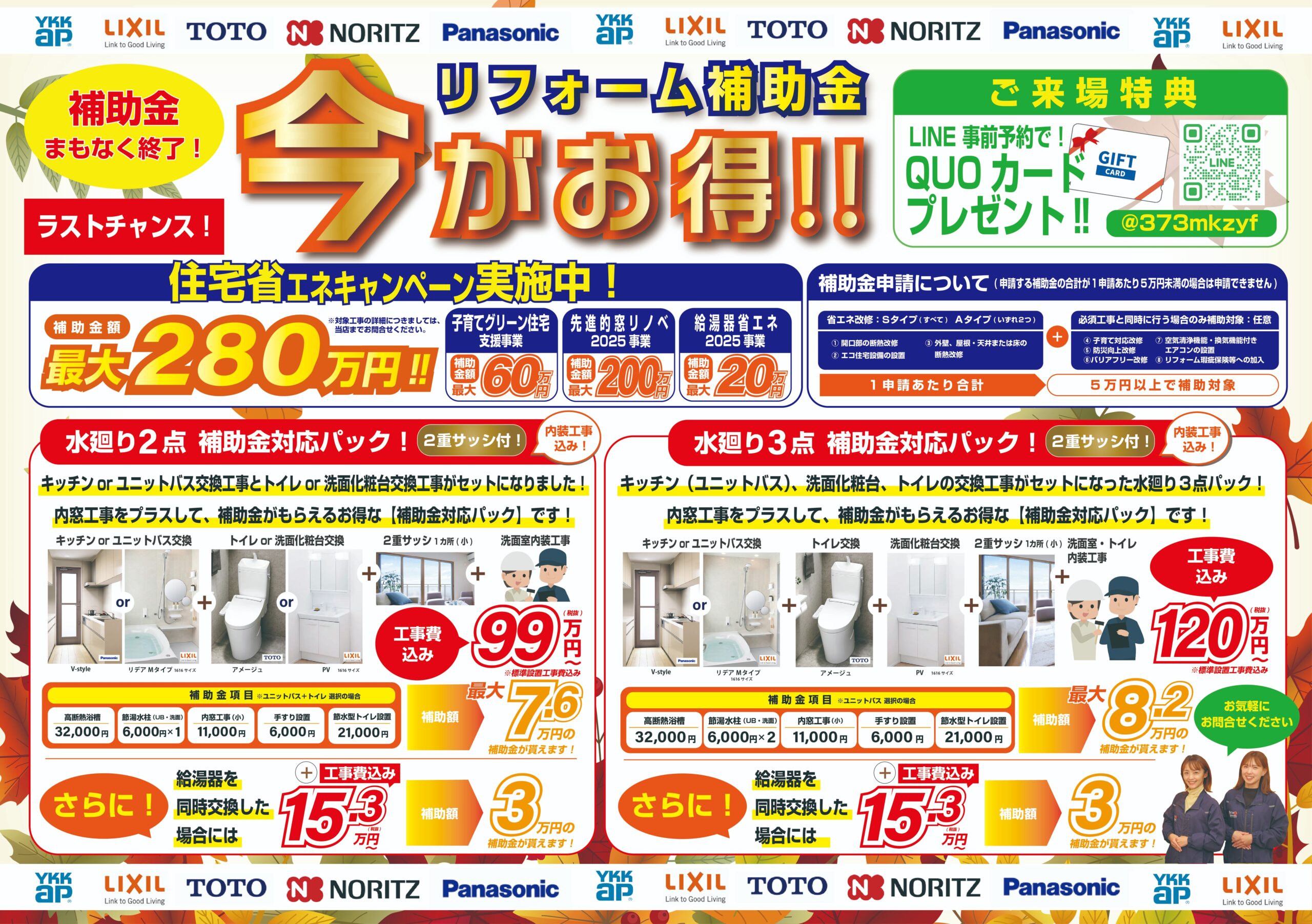 これらのキャンペーン(先進的窓リノベ、給湯省エネ、賃貸集合給湯省エネ)のいずれかを併用し、