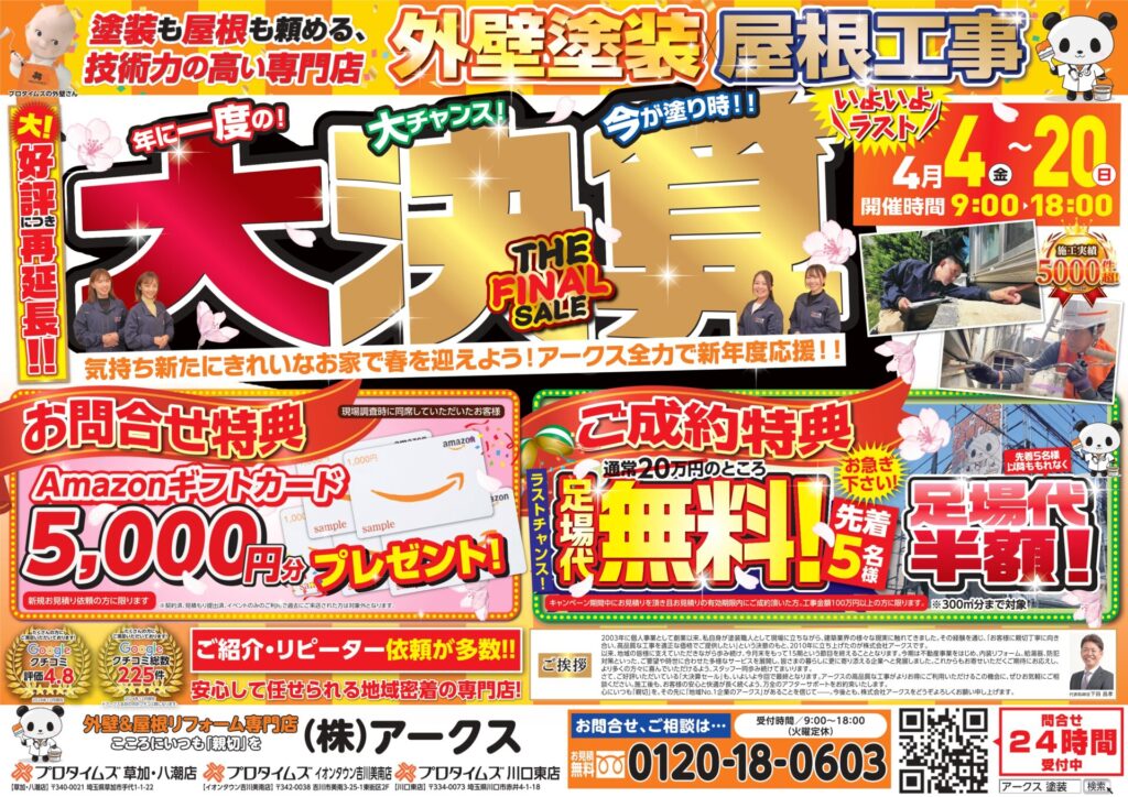 先着に漏れてしまっても足場代半額になります!ファイナルだからこそ超お得!!