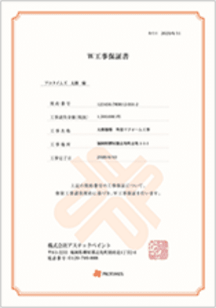 プロタイムズの運営本部が塗料メーカーであるアステックペイントだからこそ実現した日本で唯一の「W工事保証」システムです。