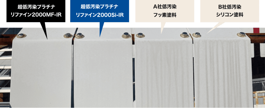 超低汚染プラチナリファインシリーズは美しさが長く続くため、汚れによる熱の吸収を抑制。一般的な遮熱塗料に比べて長く遮熱効果を発揮します。