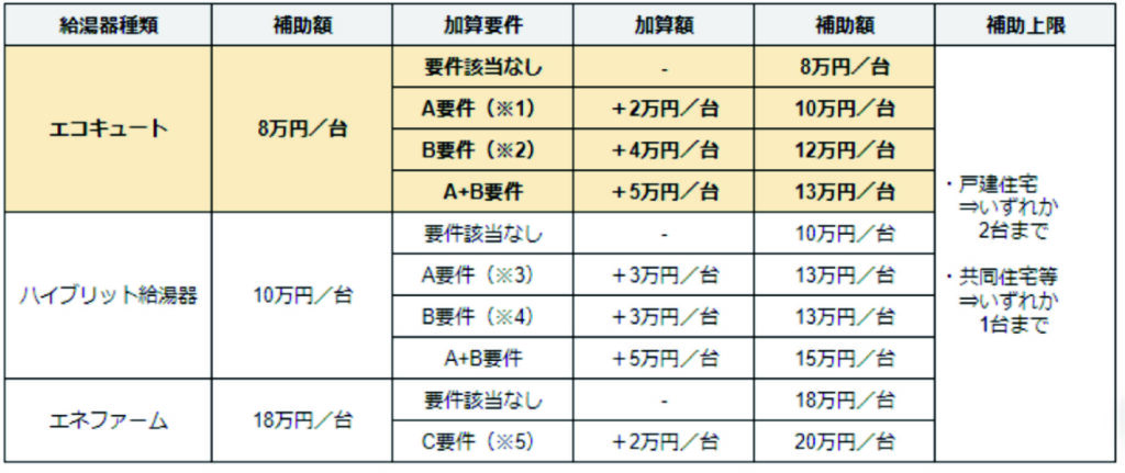 対象機器と機器別補助額補助額は機器ごとに異なりますが、
