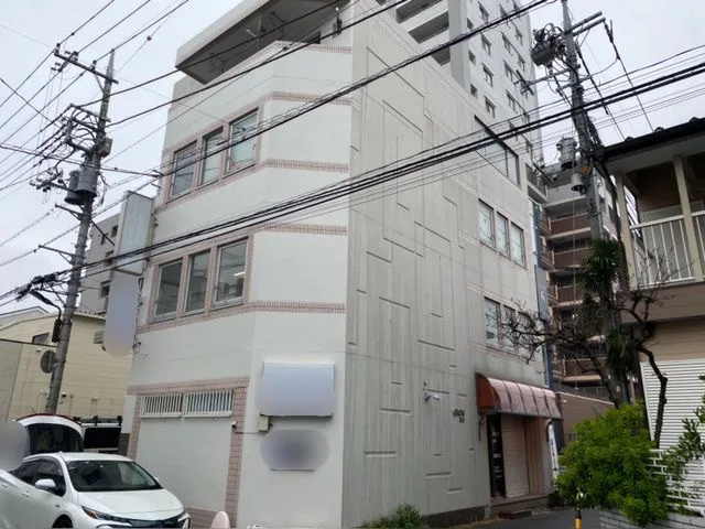 こちらのビルは、外壁全体に雨水が垂れたような汚れが付着し、全体的に色あせが目立っていました。