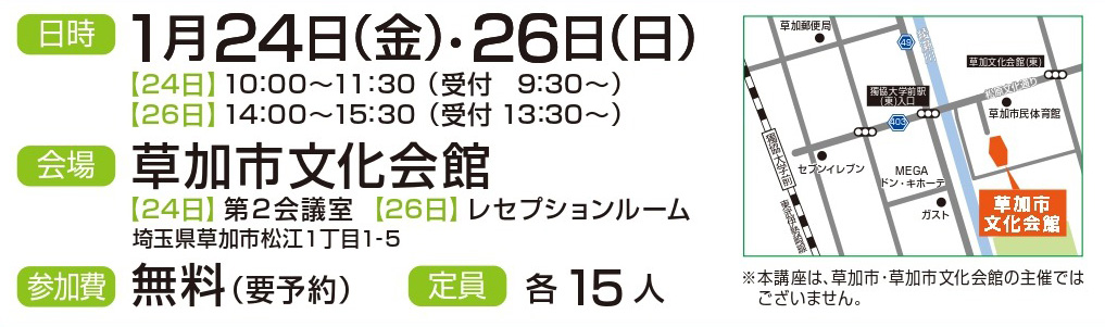 本講座は、草加市・草加市文化会館の主催ではございません。